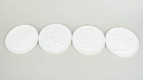 Royal Copenhagen, set of four biscuit wall plaques after Thorvaldsen.