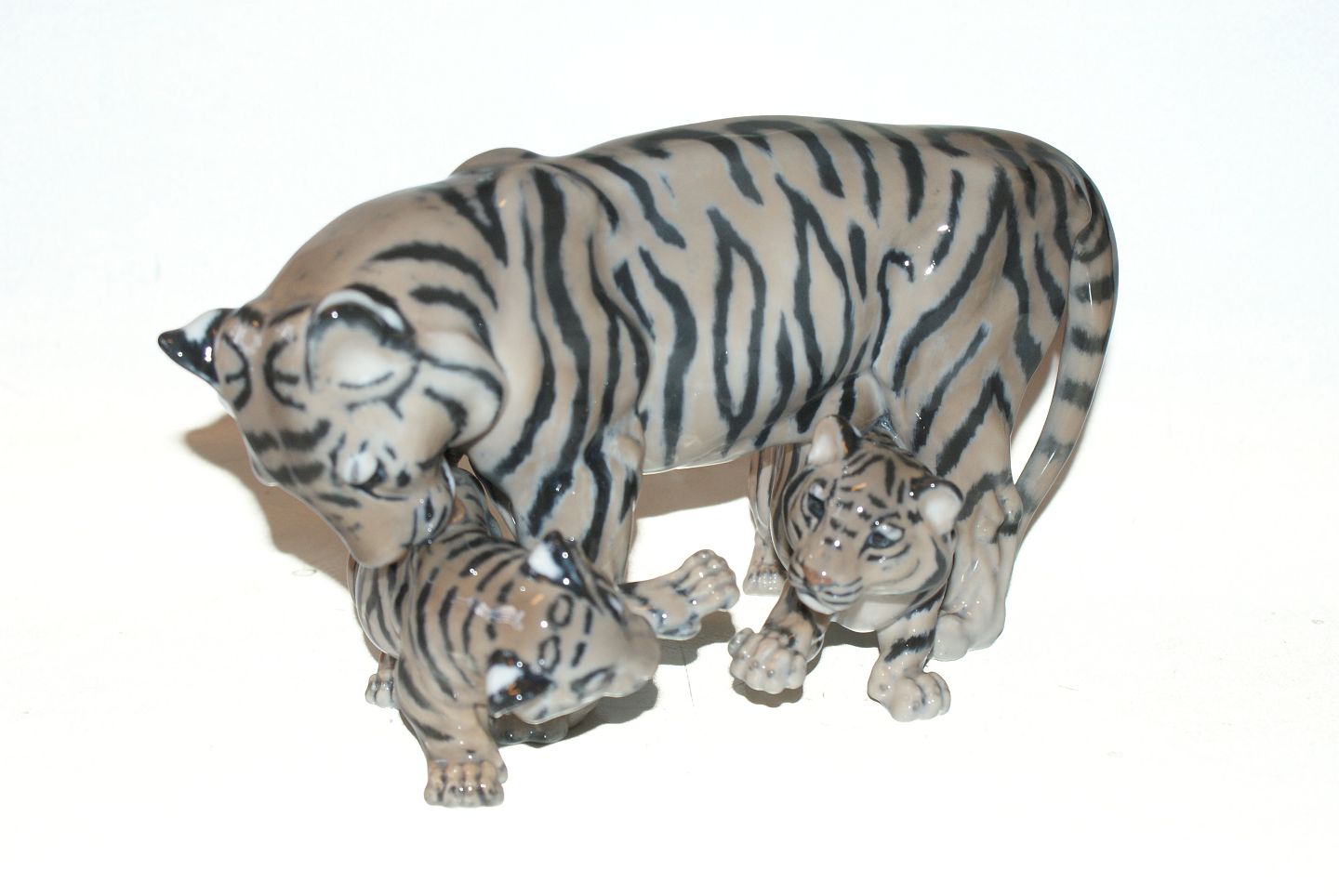 Rare Royal Copenhagen figurine of Tiger with two cubs Dek. No. 4687 factory 1st quality Size 28 x 18 cm. Perfect condition