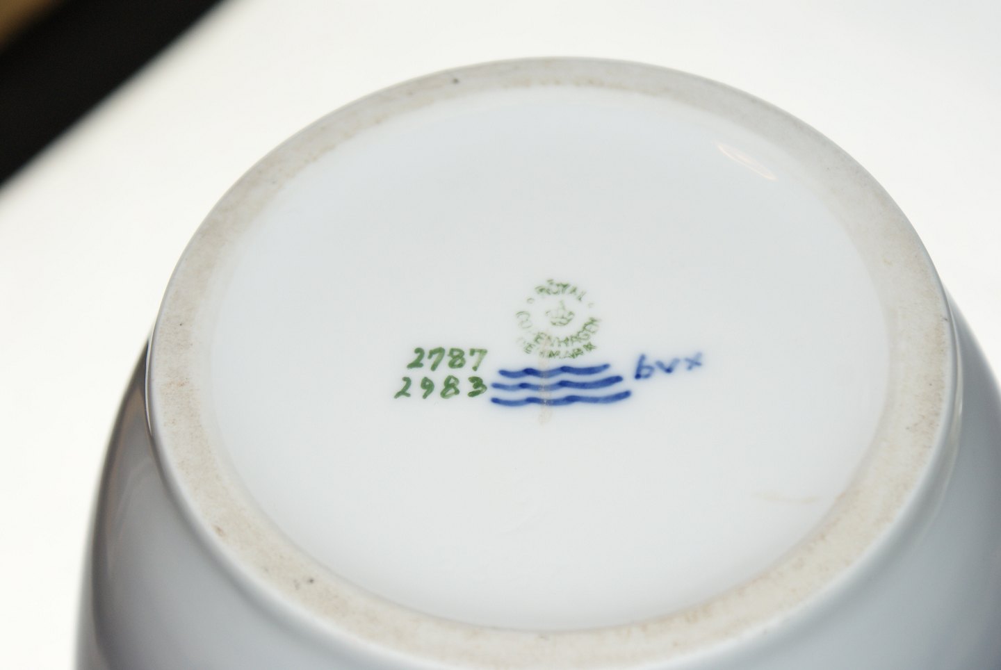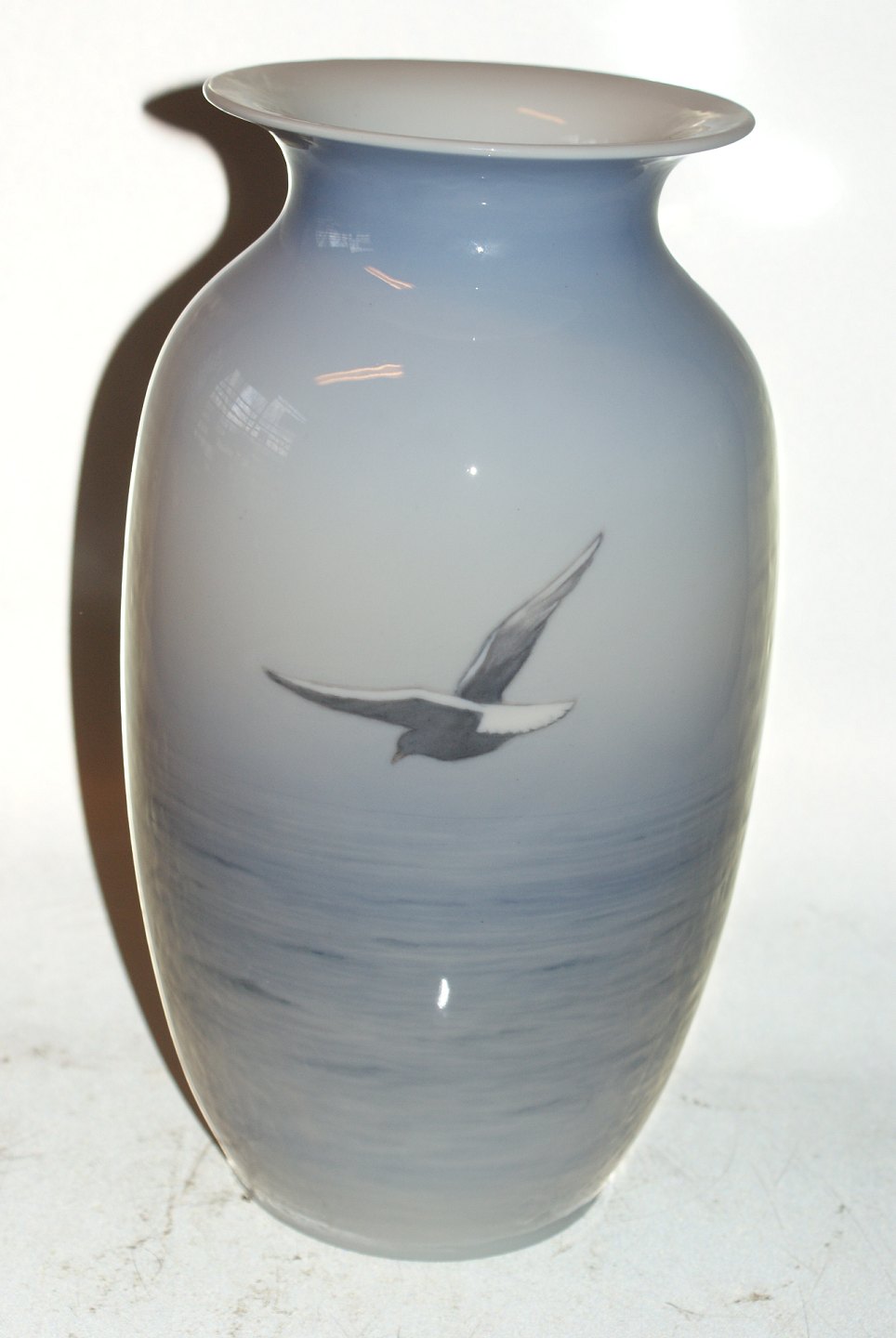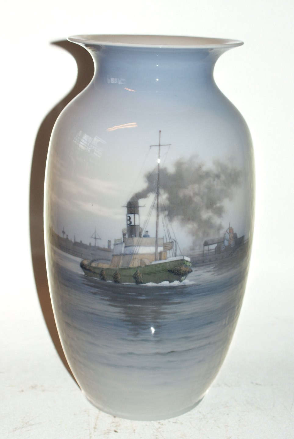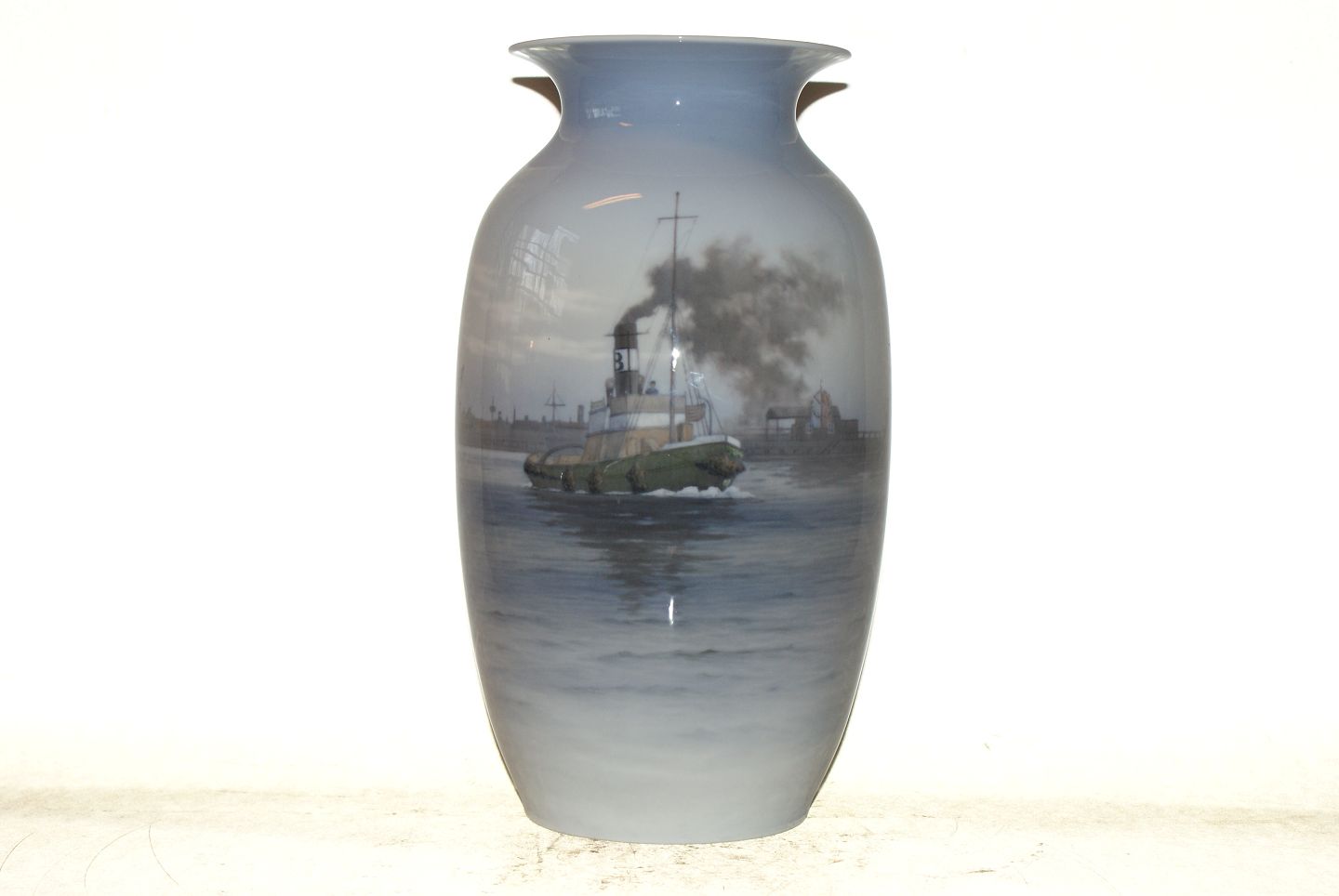 Large Royal Copenhagen Vase, Tugboat next to Copenhagen Naval Station Produced 1936 Dek. No. 2787-2983 factory 2st quality Height 32 cm. Diameter about 18 cm. Well maintained condition