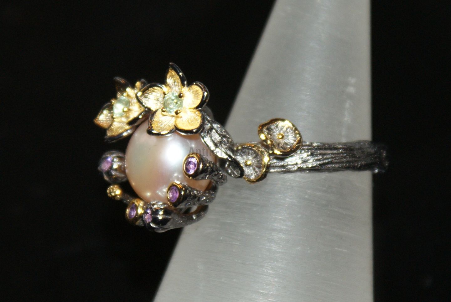 Designers Favorites ring, 216 Sterling silver, Black Rhodium 18K gold plated 2 x Peridot, RD 2.25AAA Pink Freshwater Pearl, Button shape RD 10 5 x Amethyst, RD 1.75 Size Uni size 54, 56, 58 Perfect condition