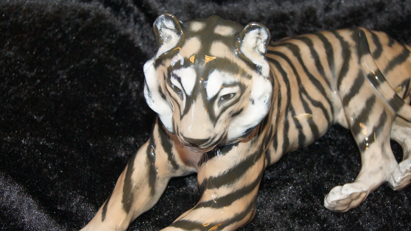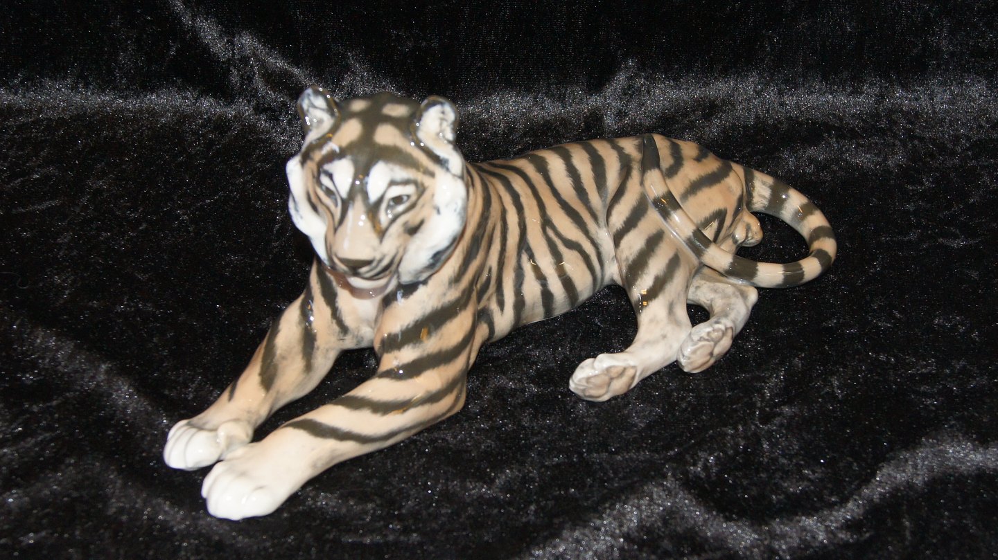 Royal Copenhagen #Tiger. Design: #Lauritz Jensen 1906 Decoration number # 714 1 sorting ring Length 31 cm. Nice and well maintained condition