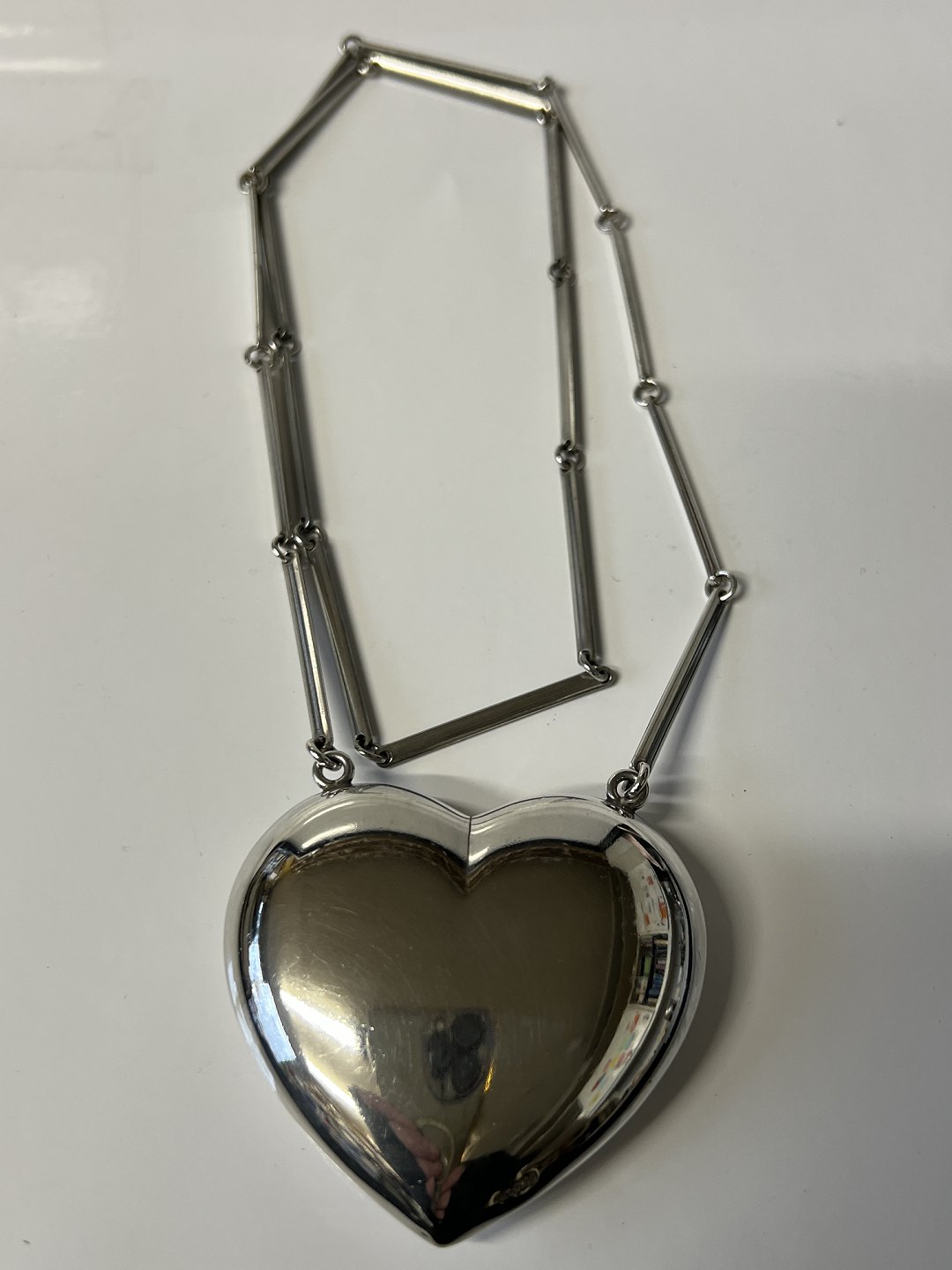 Heart with chain in sterling silver Stamped HS 925S Length of the silver chain 66 cm Length of the Heart 5.3 cm Wide. 6 cm Nice and well maintained condition