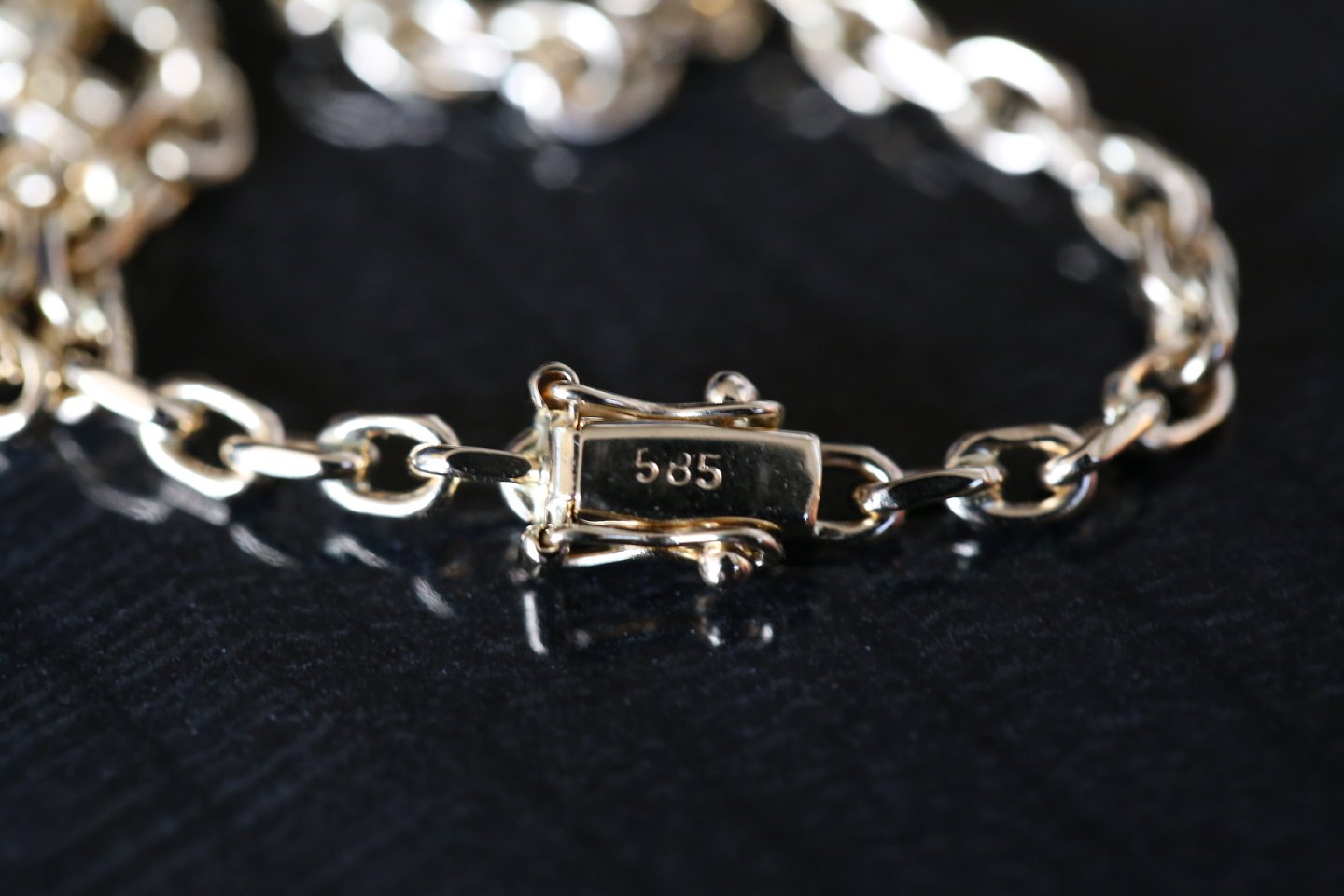 Gold chain in 14 carat gold in a simple pattern, with box lock.