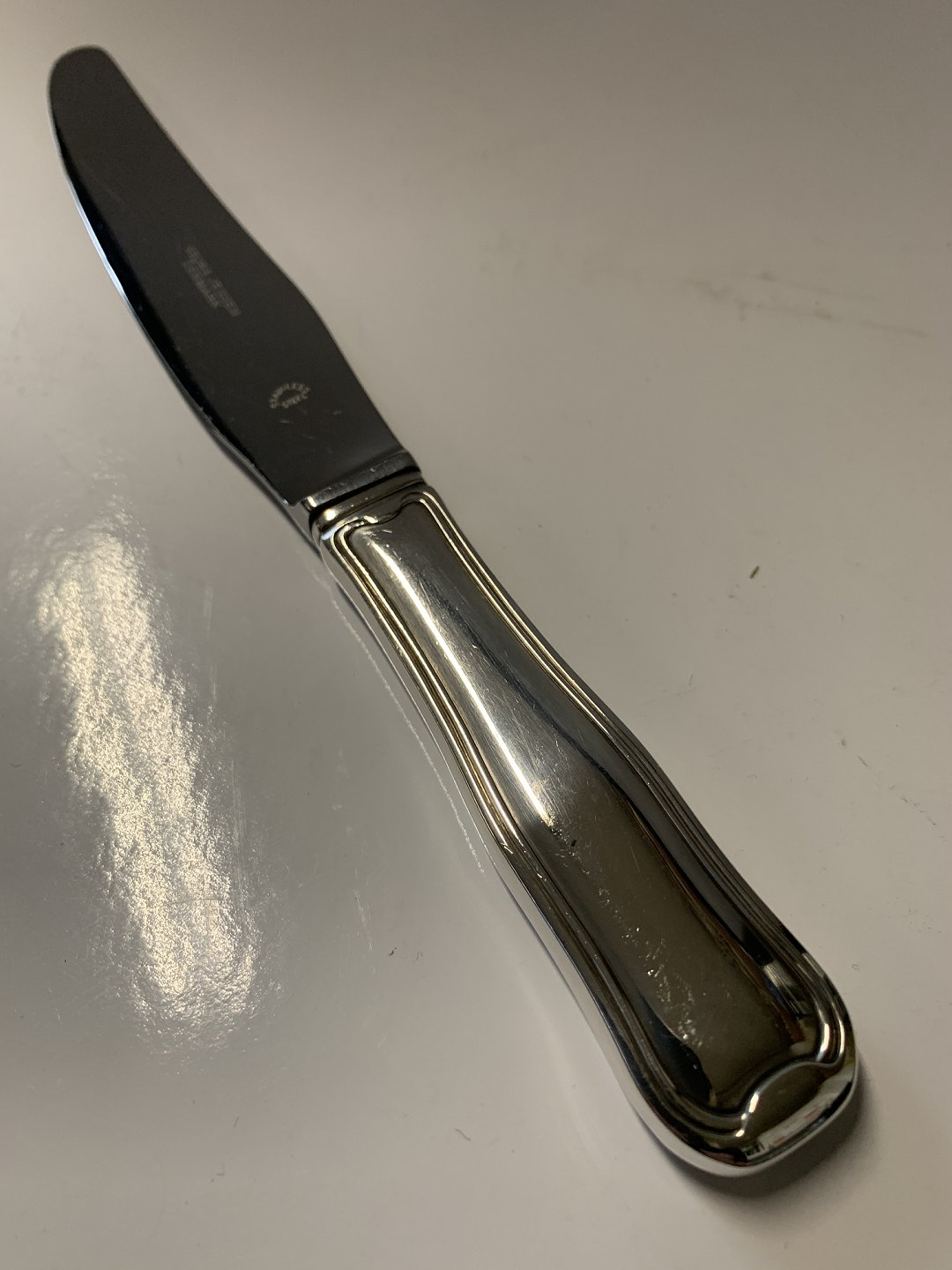 Double fluted Dinner knife Georg Jensen Sterling silver Length 22.5 cm. Well maintained condition All cutlery is polished and packed in bag