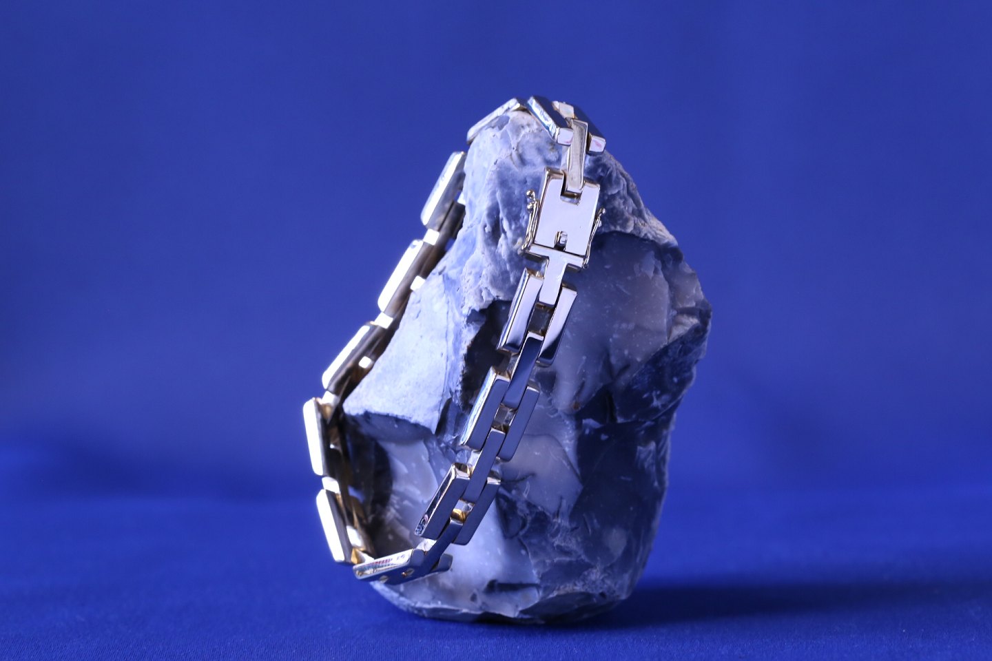 Beautiful classic Block gold bracelet in 14 carat gold, with 3 rows and box clasp. The bracelet is designed in the classic Block pattern.