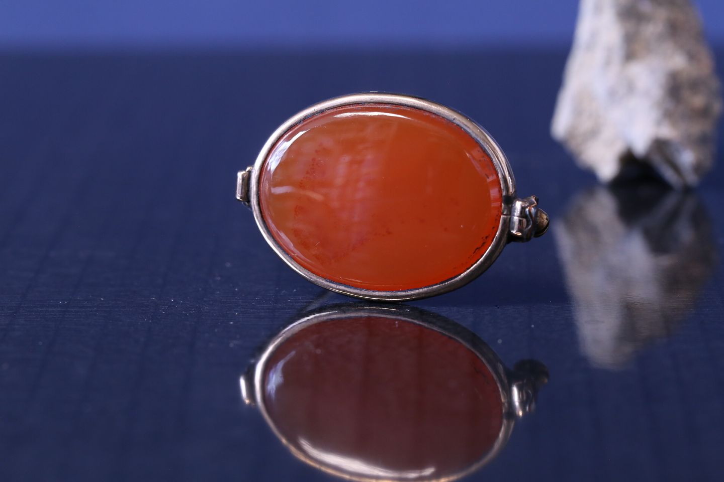 Gold brooch with large orange stone, and beautiful gold frame. The brooch will be a beautiful piece of jewelry for an elegant sweater or cardigan. Wear it in everyday life, or with a dress for festive occasions.