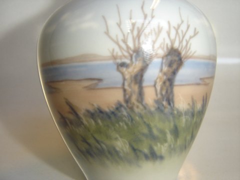 Royal Copenhagen Vase, With Pollarded trees Decoration number 2893-396 Factory second Height 10,5 cm.