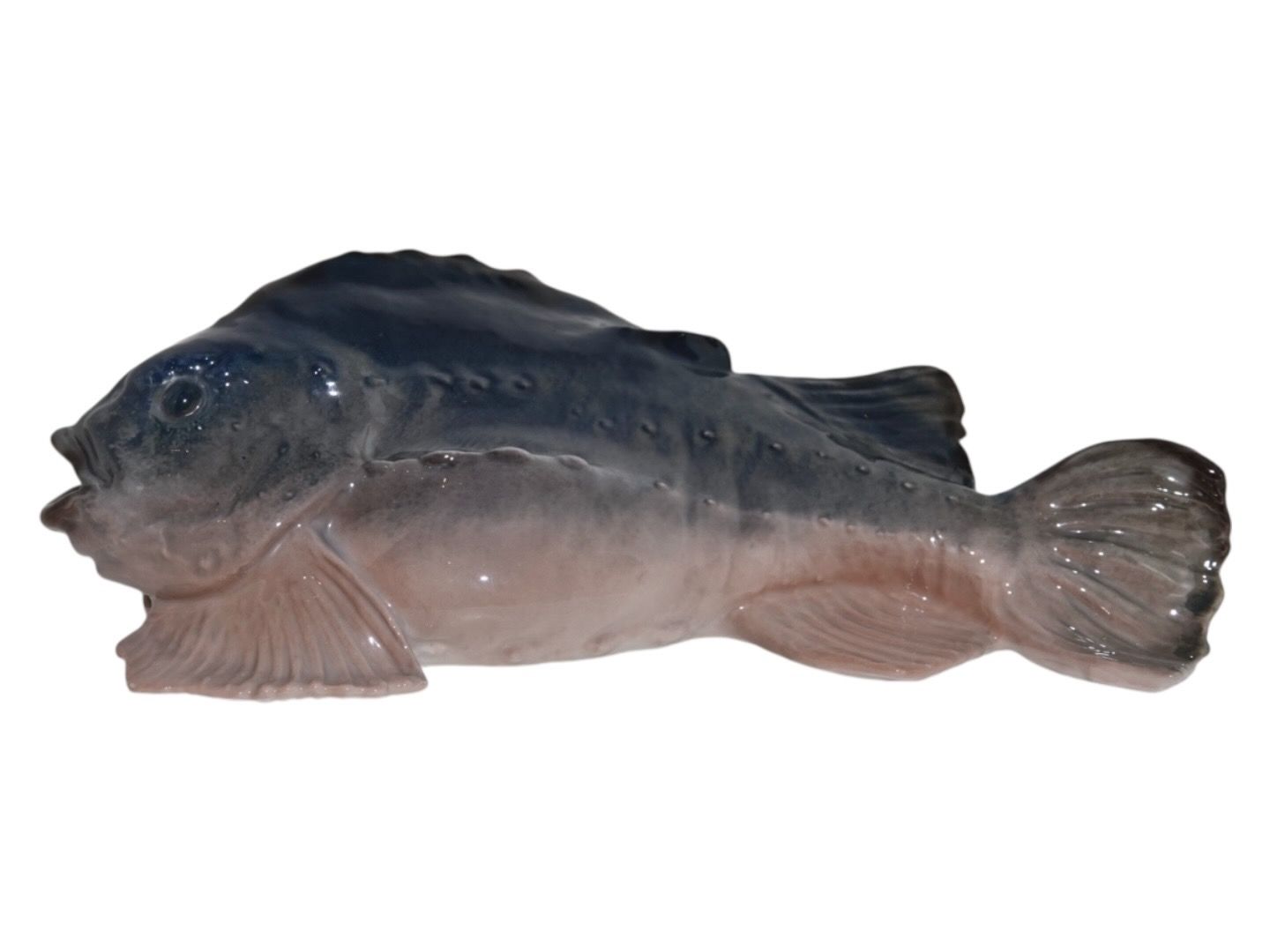Rare Royal Copenhagen fish figurine, lumpsucker. Factory second due to a few small bobbles in the glaze. Length 29.0 cm., width 14.0 cm. Perfect condition with no chips, cracks or repairs.