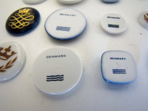 Små emblemer med kongekroner og dyr