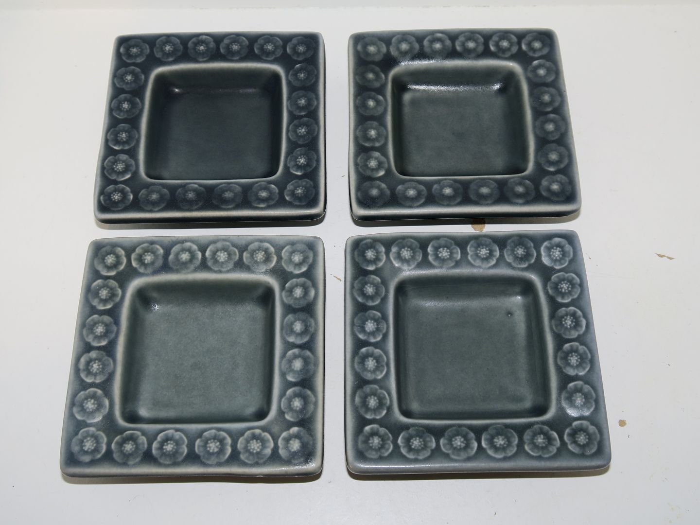 Kronjyden, Azur stentøj, lille firkantet asiet. Designet af Jens Harald Quistgaard. Måler 9,0 x 8,8 cm. Perfekt stand uden fejl.