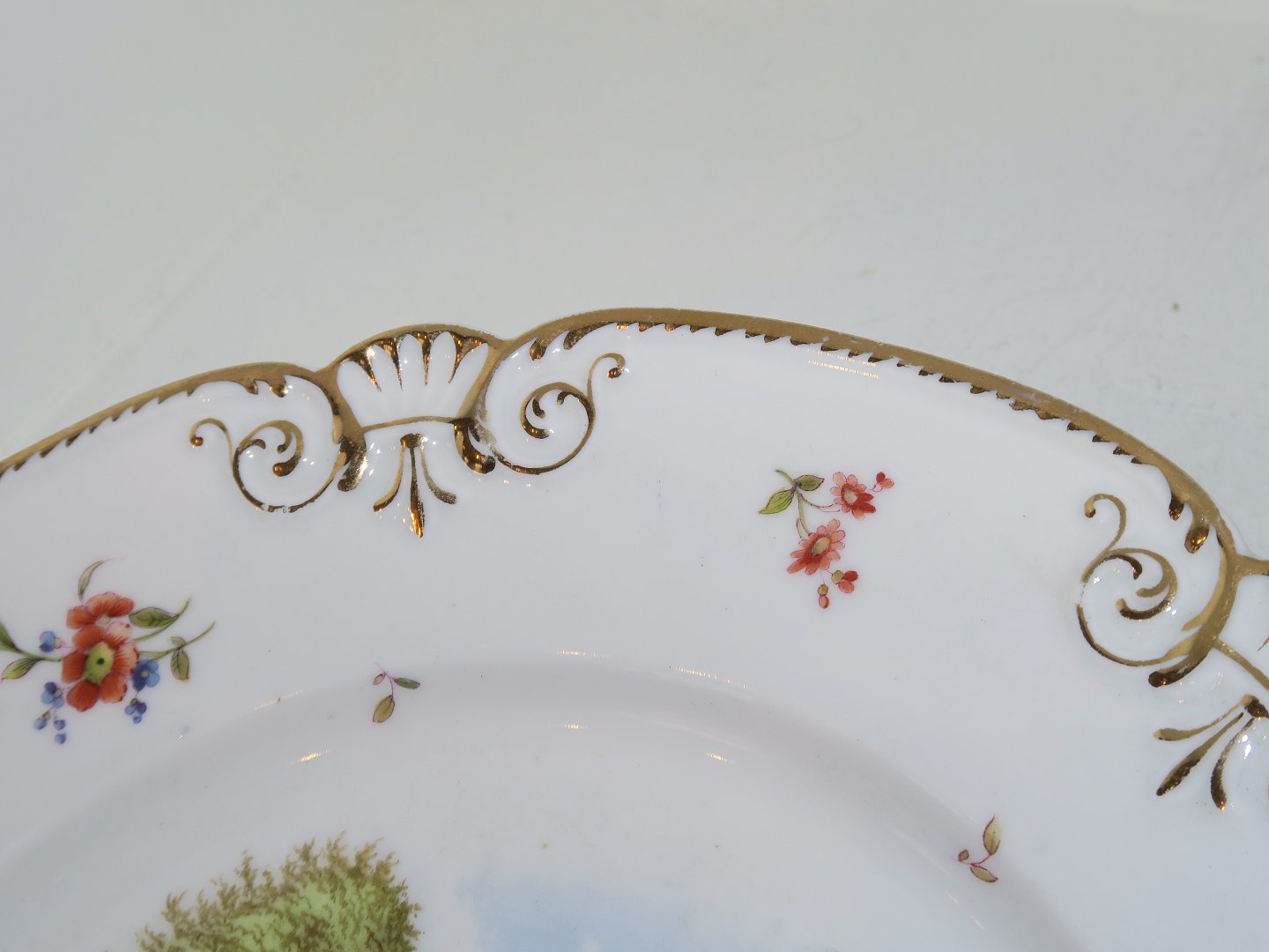 Sjælden Rokoko middagstallerken med slotsprospekt