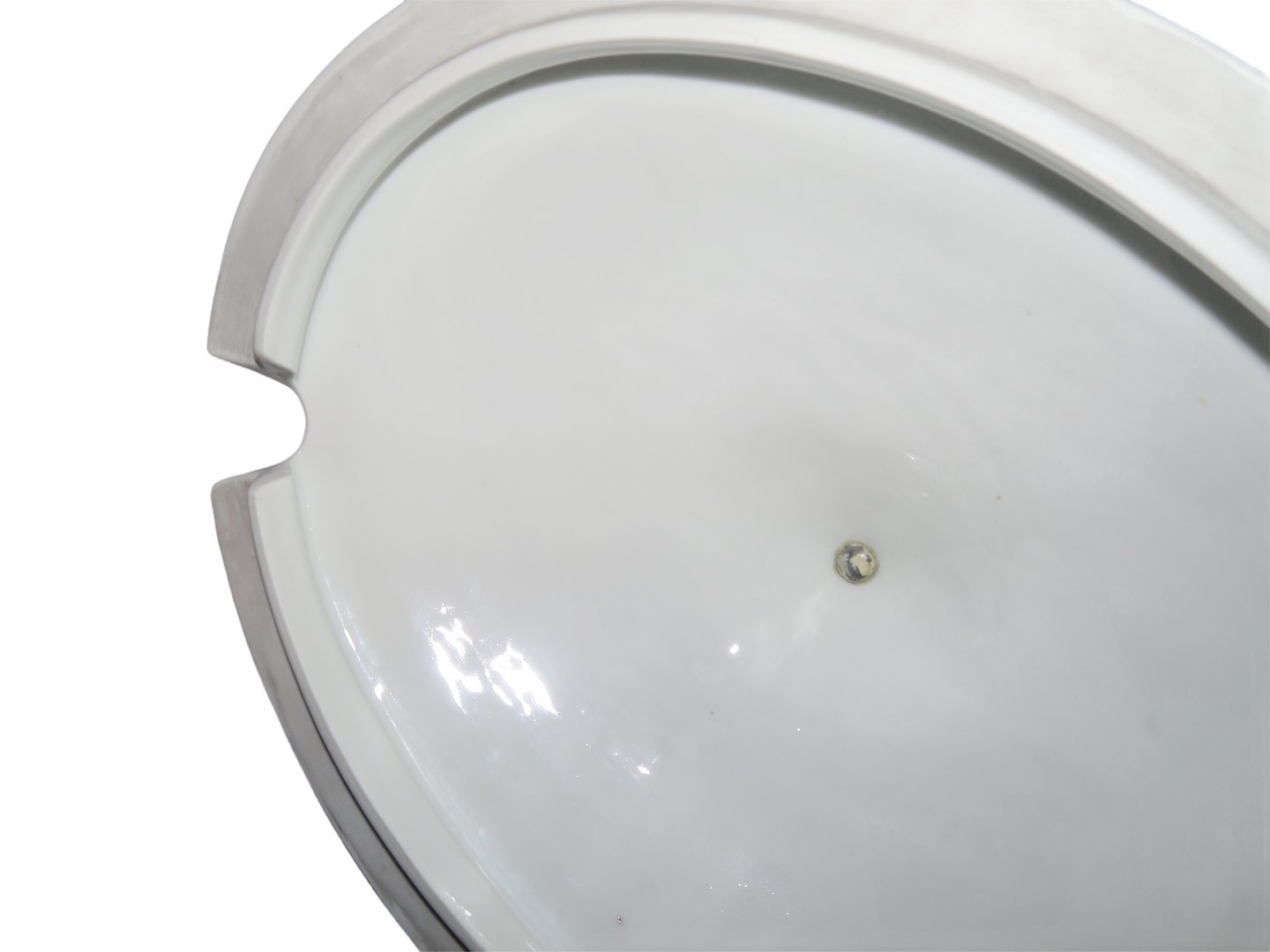 Der er et skår på bunden på ståkanten og der er isat en metalskrue på lågknoppen (muligvis original) ellers perfekt stand uden fejl.