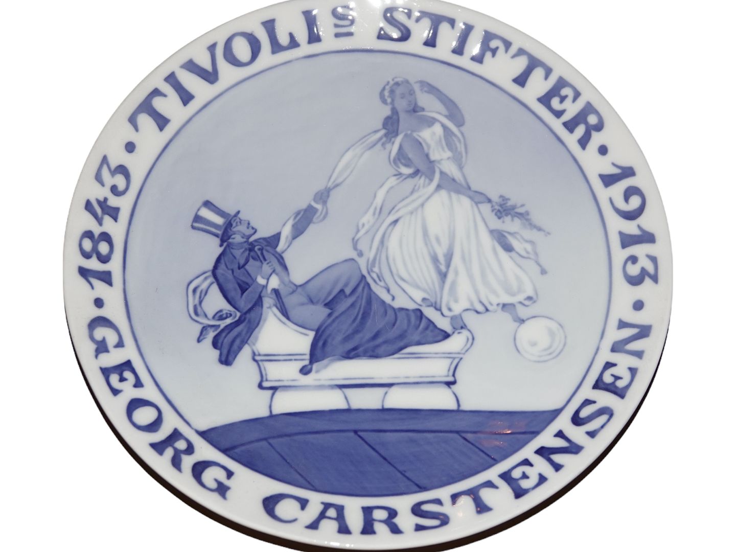 Royal Copenhagen mindeplatte fra 1913, Tivolis 70 års jubilæum med motiv af havens stifter Georg Carstensen.