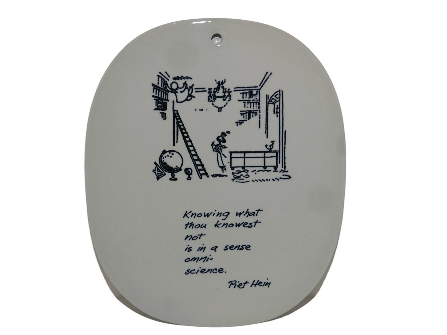 Royal Copenhagen Piet Hein platte med gruk på engelsk.