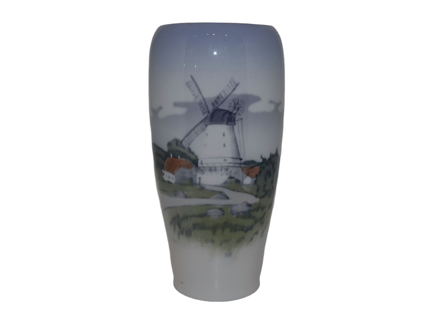 Royal Copenhagen vase with Danish mill. The factory mark tells, that this was produced in 1965. Decoration number 4568. Factory first Height 17.0 cm. Perfect condition with no chips, cracks or repairs.
