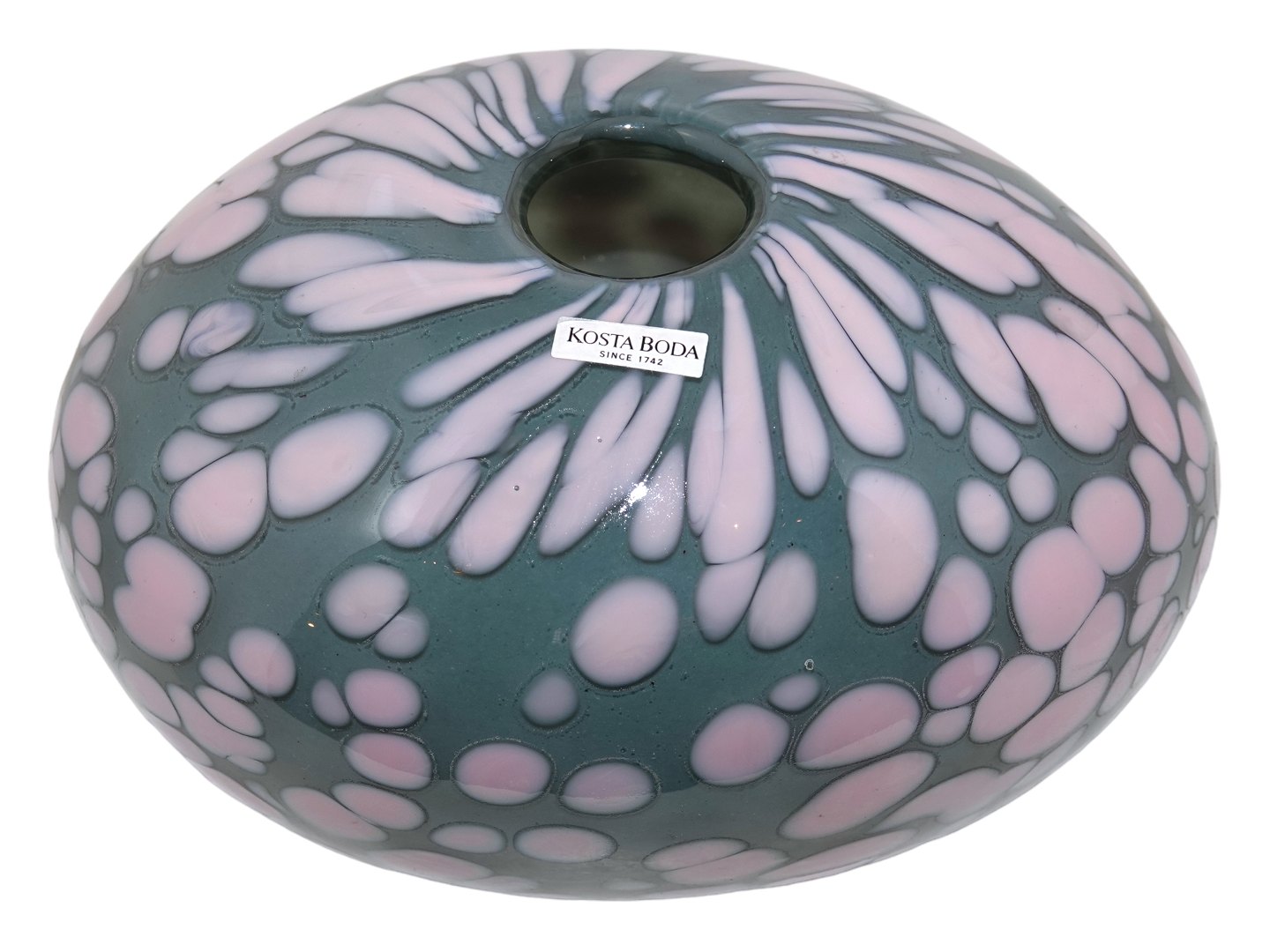 Kosta Boda Sverige, prøve vase med lyserød dekoration. Signeret "PRÖV ANN WÄHLSTRÖM". Længde 19,0 cm., højde 12,0 cm. Perfekt stand.