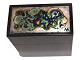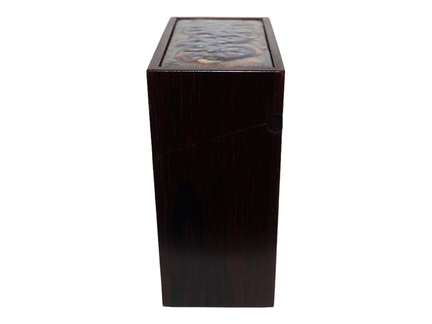 Alfred Klitgaard skrin / æske af wengetræ med Maria Viktor emalje. Mærket "KLITGAARD DENMARK". Måler 10,4 x 5,5 cm., højde 12,1 cm. Der er enkelte overfladeridser ellers flot og velholdt stand.