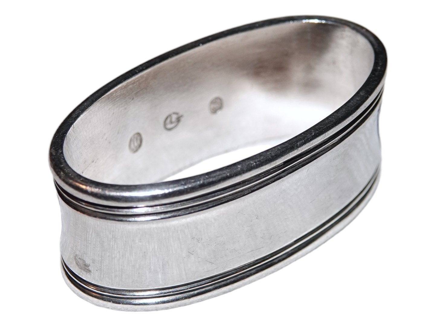 Grann & Laglye sølv, servietring i kraftig kvalitet. Fuldt stemplet. Længde 5,0 cm., bredde 2,0 cm. Velholdt stand uden indgraveringer.