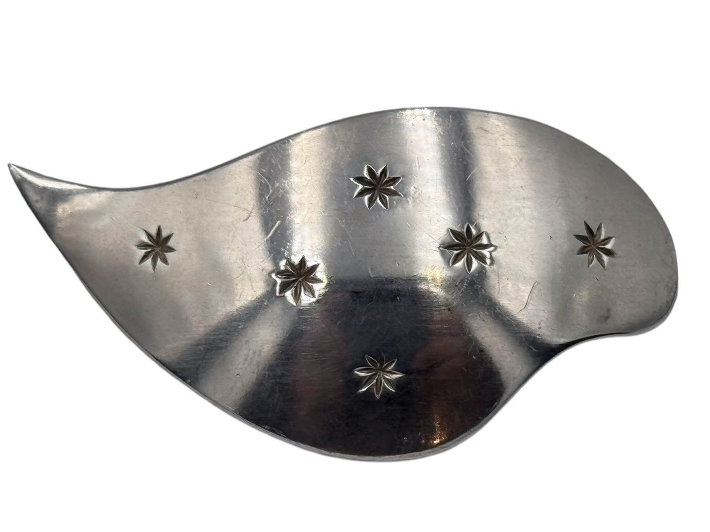 Aarre & Krogs Eftf. sterlingsølv, broche med stjerner fra ca. 1949 til 1960. Stemplet "830S A&K". Aarre & Krogs Eftf. var sølvsmed i Randers fra 1949 til 1990. Måler 5,7 x 2,8 cm. Fin og velholdt stand.