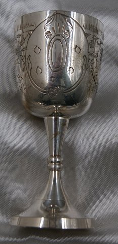 6 silver plated drinking cups on round base. In blue box with velvet.