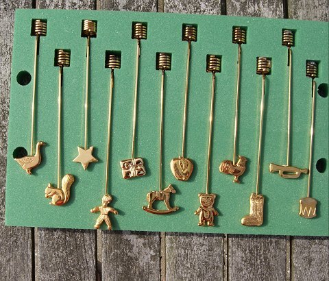 Georg Jensen Denmark Christmas ornaments in gilded brass. Christmas sheaf in unoriginal box.