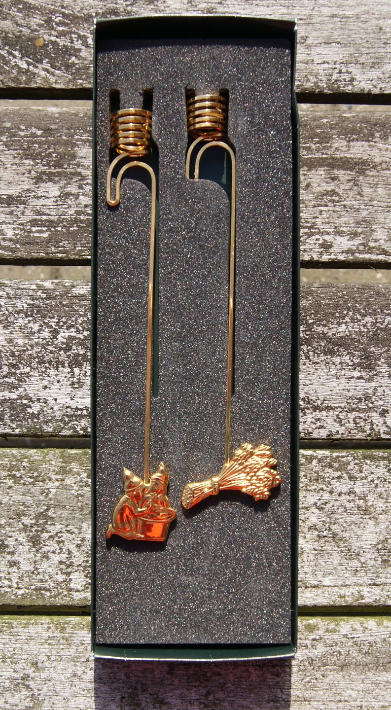 Georg Jensen Dänemark Weihnachtsdekorationen. Paar Kerzenhalter aus vergoldetem Messing, Stern und Mädchen