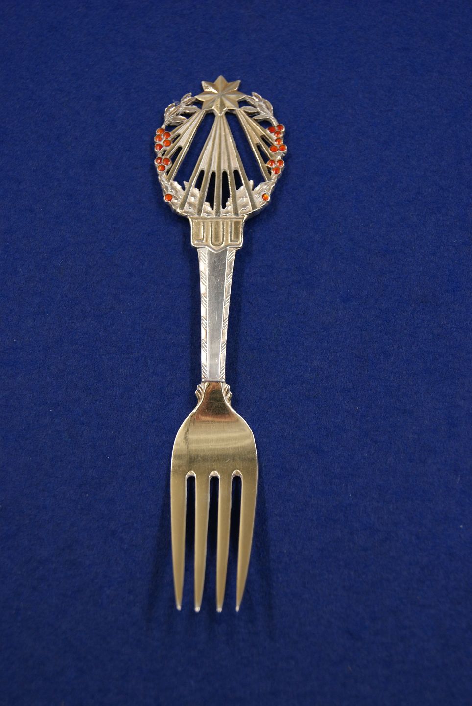 Michelsen Set Christmas spoon and fork 1984 of Danish gilt sterling silver