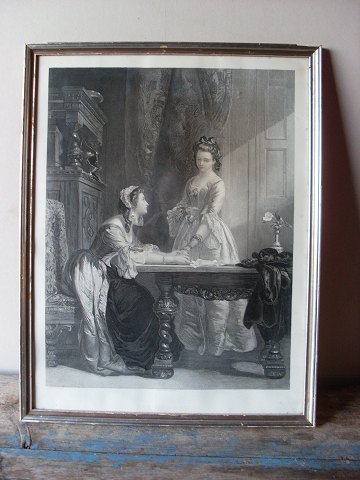 Stort tysk kobbertryg i sølvramme.Mål 53,5x41,5cm.
