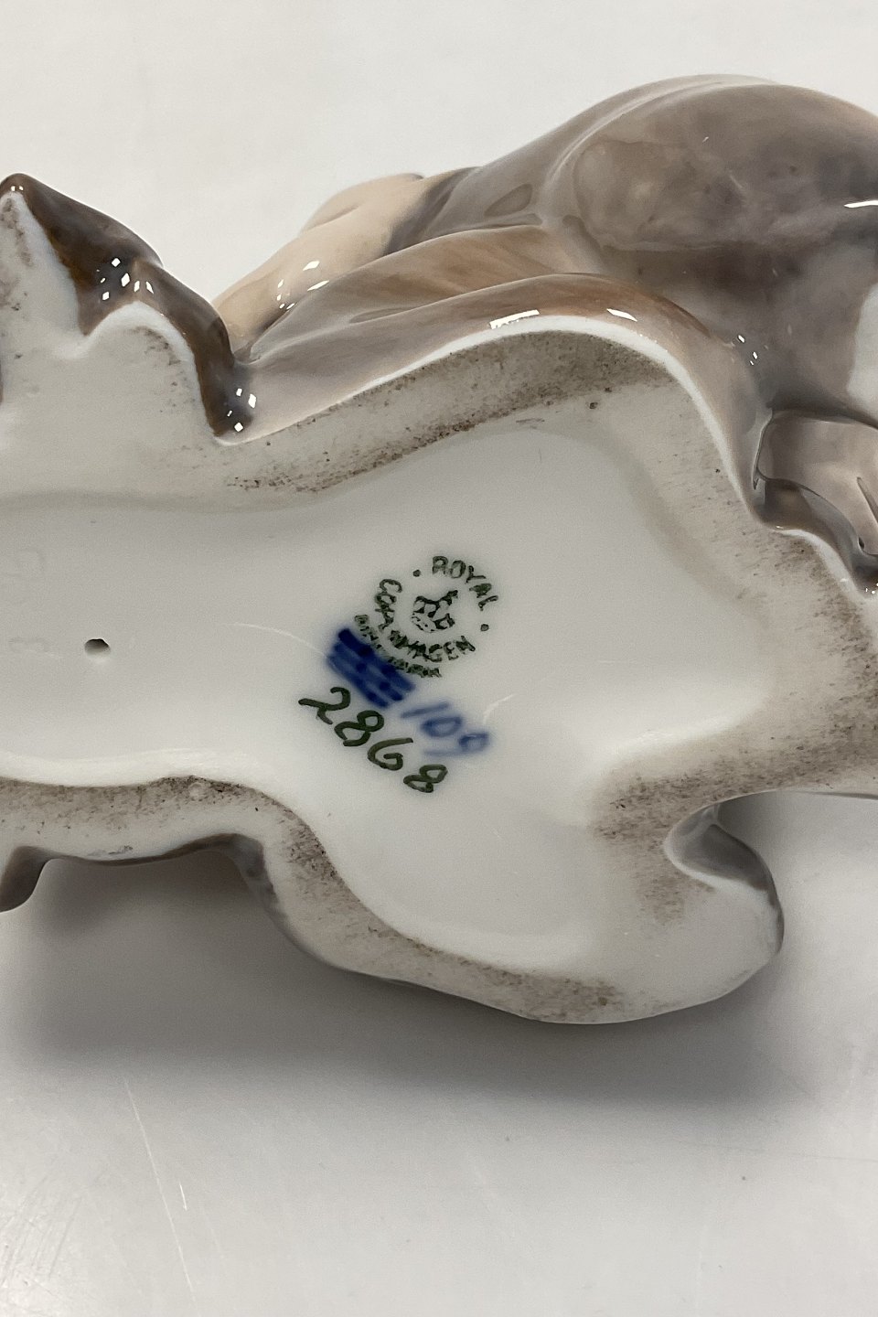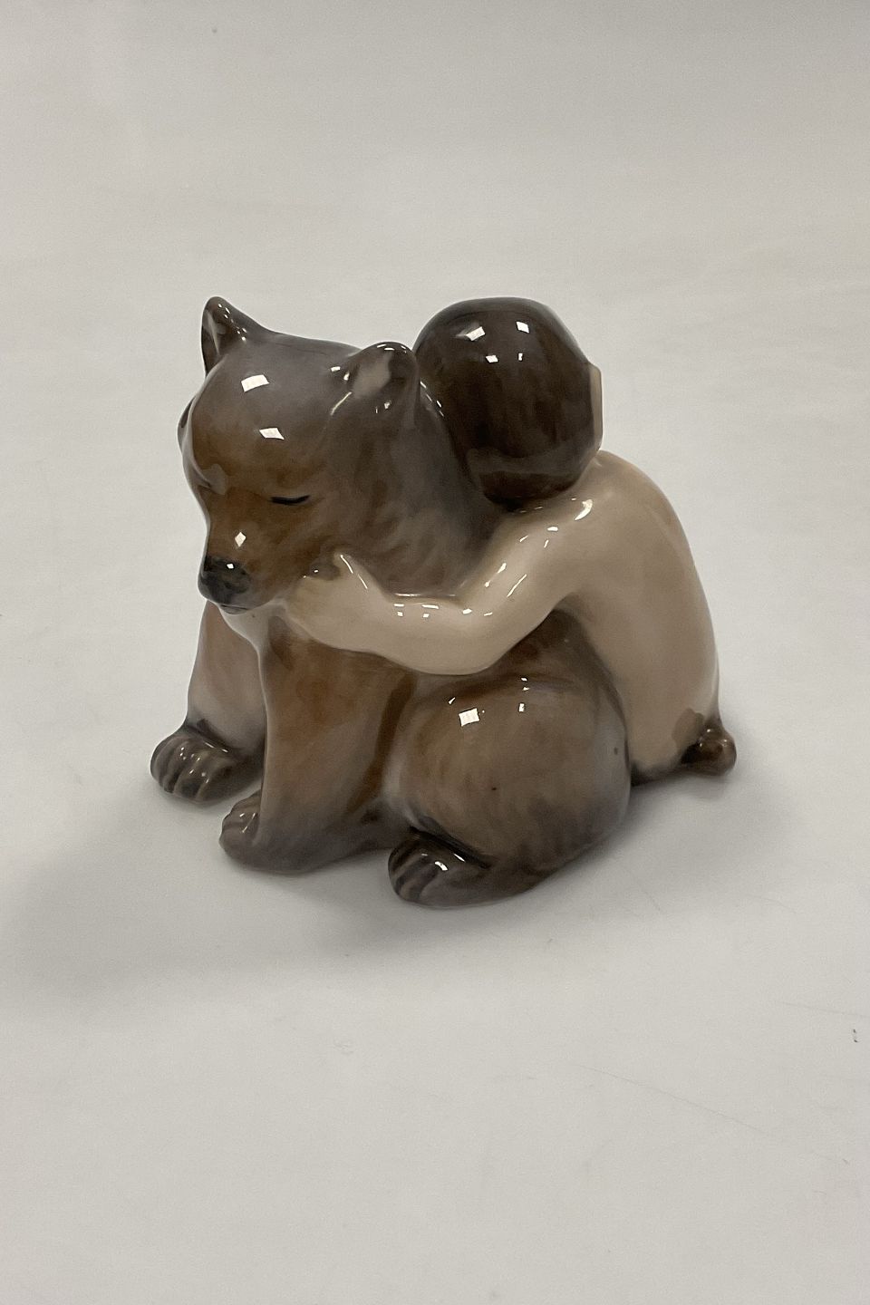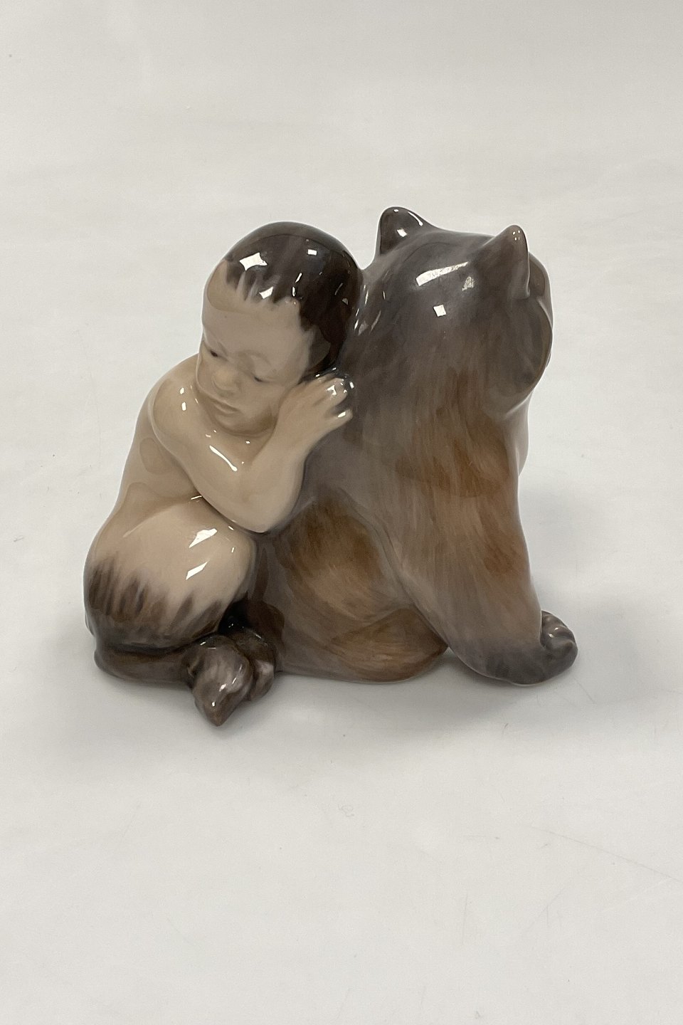 Royal Copenhagen Figur Faun/Pan with Bear Cub No 2868. Measures 11cm x 9cm and is in perfect condition. 1st quality.Stock: 1