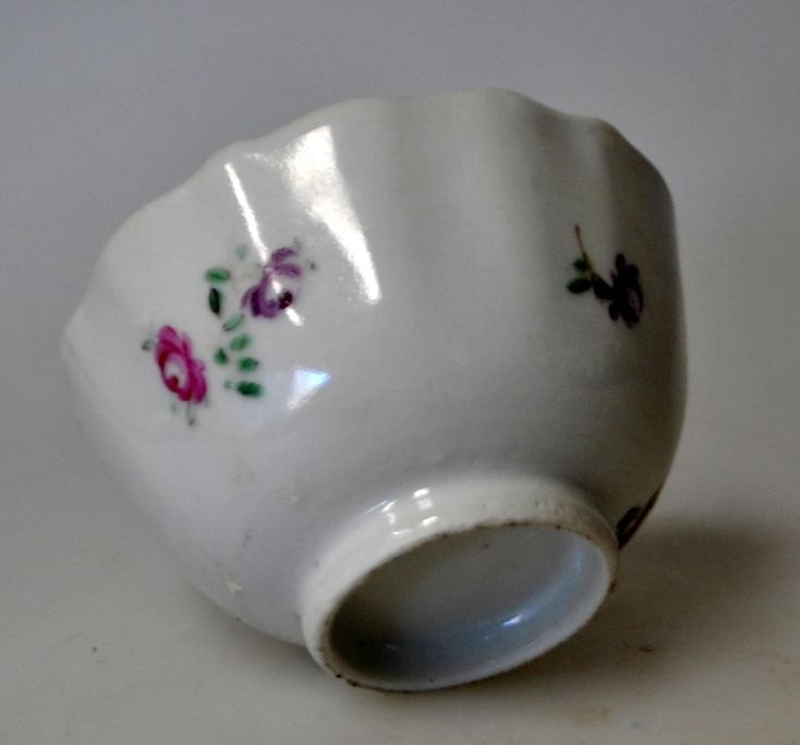 Lille skål, Kina, med bølget kant. Dekoreret med blomster i polykrome emaljefarver. Med guirlander i blomsterornamentik. Kina Qianlong, ca.1780. H.: 4,8 cm. Dia.: 8 cm. Med hårrevne.Emne nummer: 3298