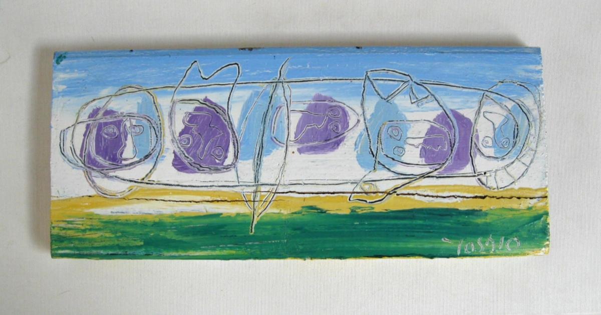 Nakajima, Yoshio (1940 - ) Japan/Sverige: Summer holliday. Olie på træ. Signeret: Yoshio. 22 x 42 cm.Emne nummer: 3739