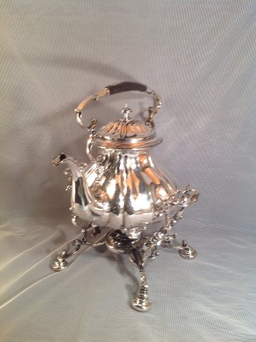 Big beautiful tea kettle. Swing Boiler silver plated, fluted body, the associated condition with burns. 1930s. Height incl. stand and hanger 35Contact for price