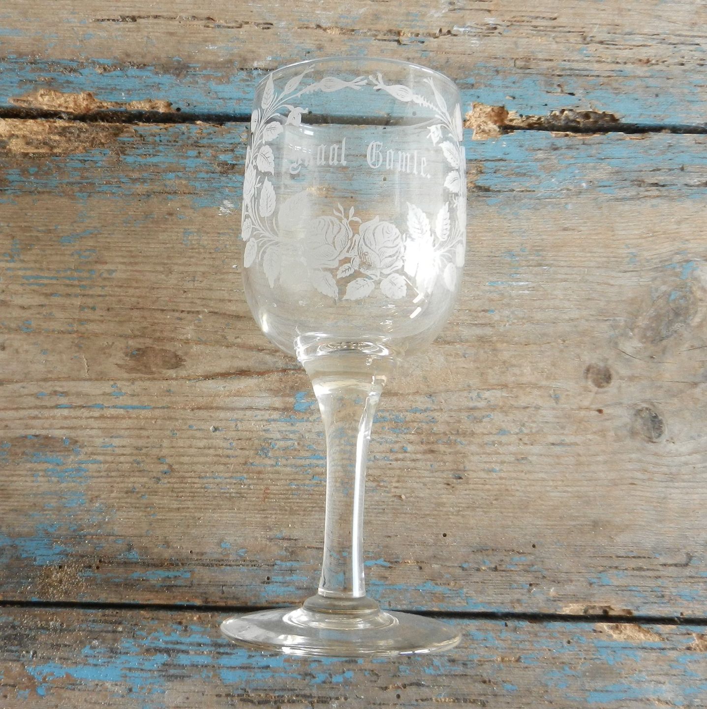 Don Carlos erindrings glas med teksten "Skål gamle"Aalborg Glasværk.