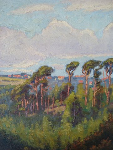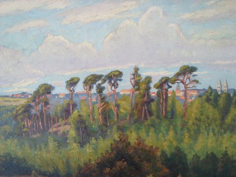 Maleri af Hans Kruuse - Landskab fra Viborg egnen med vue ind over Viborg by.