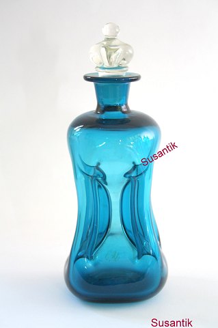 Holmegaard, Blå kluk karafler med klar kugleprop:Karaffel, højde 29 cm. Flot stand. Pris: 400 kr.