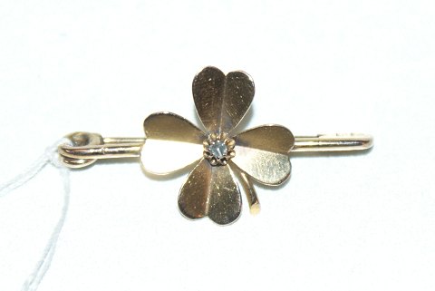 Four-leaf clover Brooch with Diamond Gold 14 CaratStamp: 585, HF