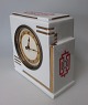 Funkis ur i porcelæn, Tyskland, 1933. Hvid kasse med bemalinger i geometriske mønstre og forgyldninger. Gustav Becker urværk. På bagsiden anført: Fra Hjælpekassen Bestyrelse den 10-4-1933. H.: 16 cm. B.: 15,5 cm. D.: 7,5 cm.Emne nummer: 10133