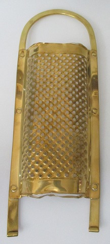 Rivejern i messing, 19. årh. Stemplet: Kobbermøllen ved Flensborg. Med perforeret, opbuet messingplade oplagt på messingbøjle. L.: 34 cm. B.: 12 cm.