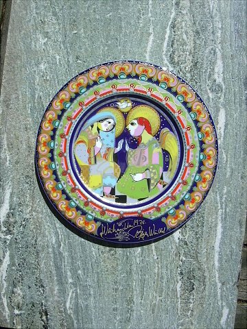 Bjørn Wiinblad juleplatte fra 1975. Diameter 28 cm. 1. sortering. Rosen Thal porcelæn. Flot stand. Udstiller