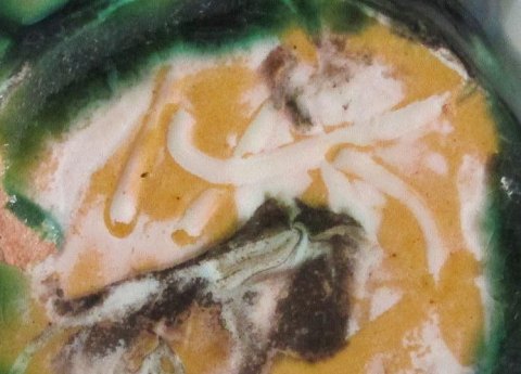 Herman A. Kähler vase with the name: Broager. Advertising. Næstved, Denmark. Souvenir. Vase with glaze in black, green, blue and white. H .: H .: 8.5 cm. On the edge a small hairline.Item number: 10409