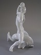 B&G Mand med Barn på skulderen sidder på Delfin,Kaj Nielsen H: 42 cm.