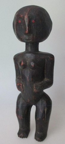 Par African carved wooden figures, 20th century. A woman and a child. Eyes with beads. H .: 21-23 cm.Item number: 13621