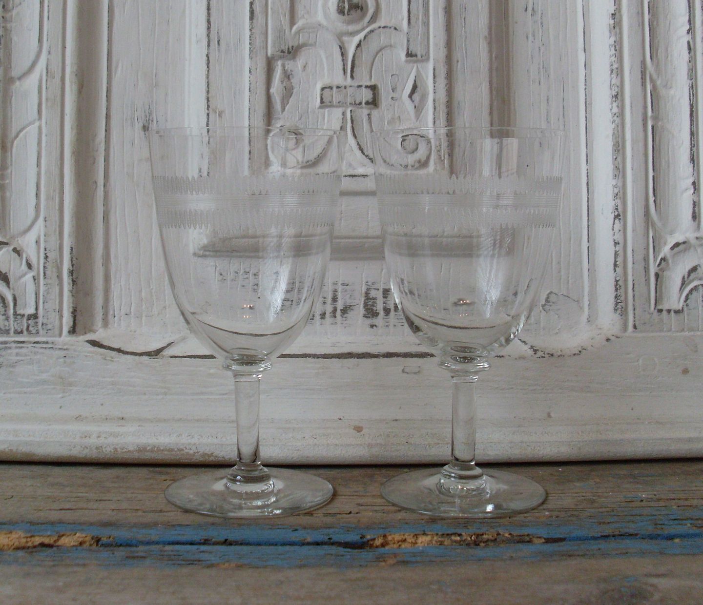 Vinglas med guillocheret bort.Holmegaard omkring år 1900.