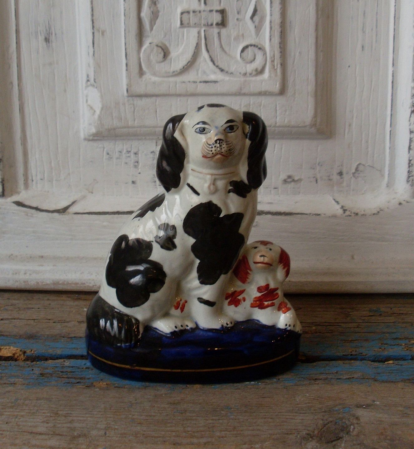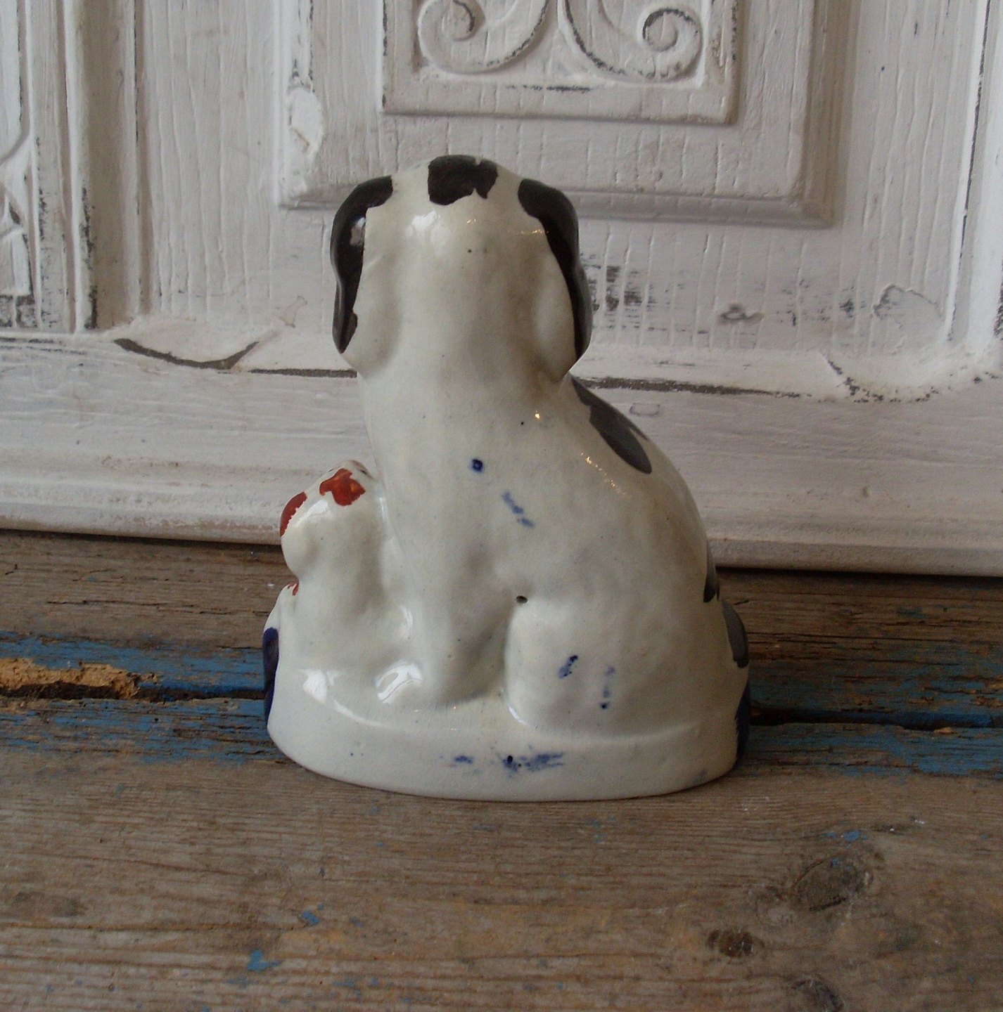 Staffordshire figur - hund med hvalp.Højde 15,5cm. Længde 12,5cm.