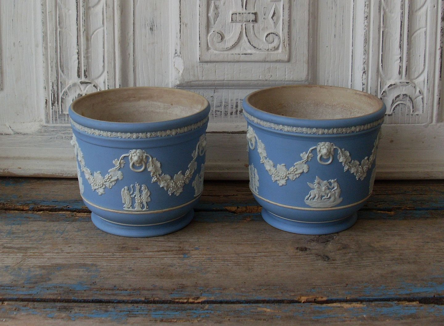Wedgwood Jasperware par urtepotter.Højde 12cm. Diameter 13,5cm.