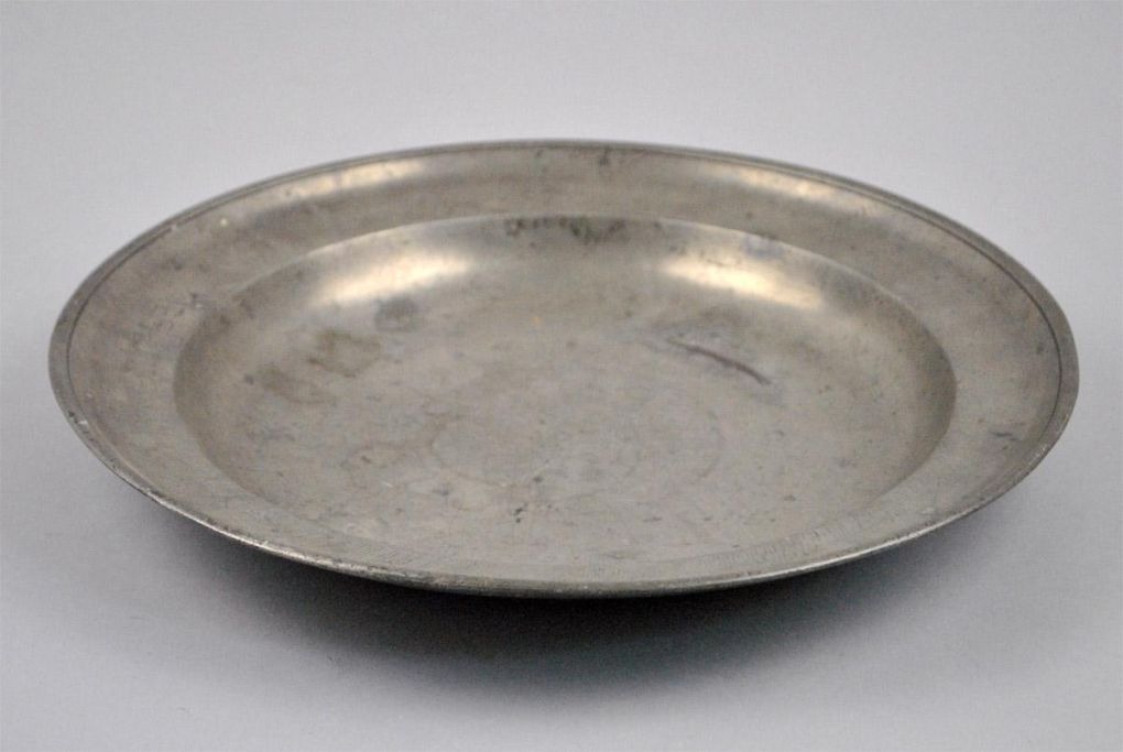 Antikt tinfad. 18./19. årh. På fanen navnet: I. Abel. Dia.: 33 cm.Emne nummer: 15406
