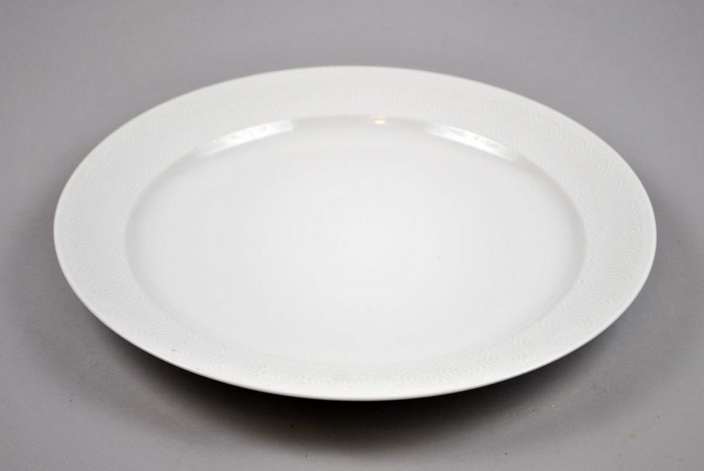 Royal Copenhagen, rundt fad, design 14.407, Salto, 1962, Danmark. Hvidt. Porcelæn. Stemplet. Dia.: 35 cm. 2. sortering.