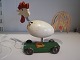 Bemalet træhane til at trække på metalhjul. Ca. 1920. Stemplet i bund 1038 og et aflangt trekantsmærke med bogstaverne PCR. Højde: 15,5 cm. Længde: 19 cm. En del afskaldninger i bemalingen. Dealer