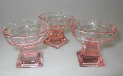 Pink salt, Elme Glasbrug, Sweden. 20th century. Square foot and 8 edged cuppa. Height: 5.5 cm. With label.Price per PCS. Pt .: 2 in stock.