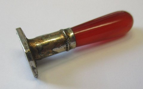 Forsølvet segl med agat, 19. årh. Længde.: 3,3 cm.Emne nummer: 16681